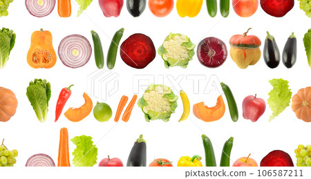 This Stock Photo, whose title is "Fruit vegetable seamless pattern isolated on white"[106587211], includes tags of fruit, vegetable, seamless. The author of this item is Serg64 (No.210261). Sizes from S to XL are available and the price starts from US$5.00. You can download watermarked sample data (comp images), check the quality of images, and use Lightbox after signing up for free. See all