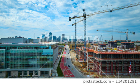 Stock Photo: Aerial View of Urban Construction Site with Cranes in Indianapolis