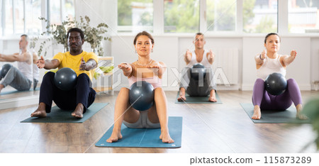 This Stock Photo, whose title is "Group of men and women doing pilates with softball"[115873289], includes tags of woman, group, fitness. The author of this item is JackF (No.278469). Sizes from S to L are available and the price starts from US$5.00. You can download watermarked sample data (comp images), check the quality of images, and use Lightbox after signing up for free. See all