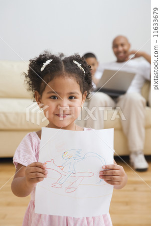 Stock Photo: Indian girl holding up drawing