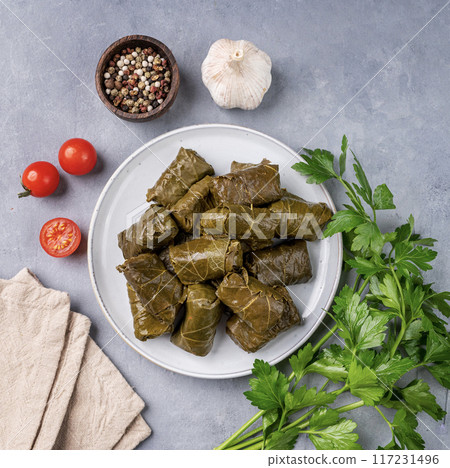 This Stock Photo, whose title is "Dolma. Stuffed grape leaves (traditional..."[117231496], includes tags of food, vegetable, ingredient. The author of this item is Olga Buntovskikh (No.2532457). Sizes from S to XL are available and the price starts from US$5.00. You can download watermarked sample data (comp images), check the quality of images, and use Lightbox after signing up for free. See all