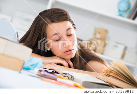 Female fell asleep when she was studying