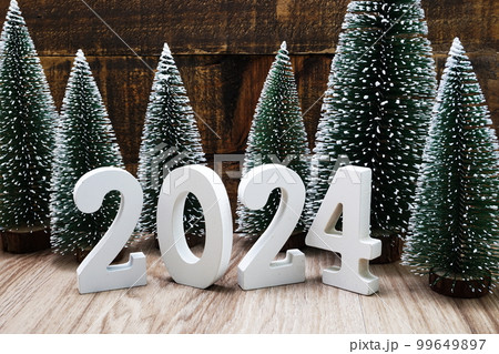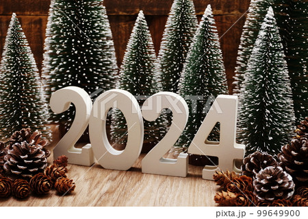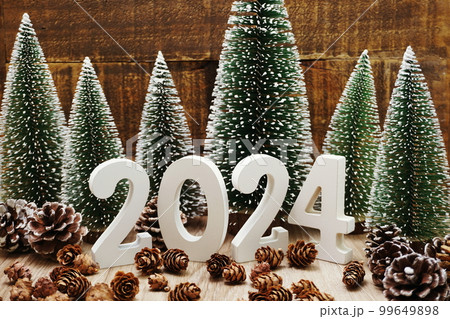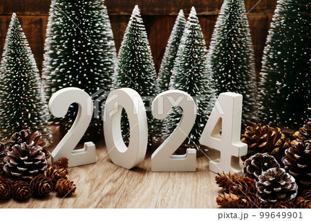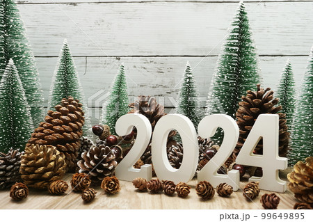 Happy New year calendar 2024 concept decoration with Christmas tree pine cones on wooden background Images: Photos and Illustrations Page 1