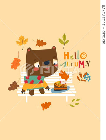 cute bear autumn leaves Illustrations Page 1